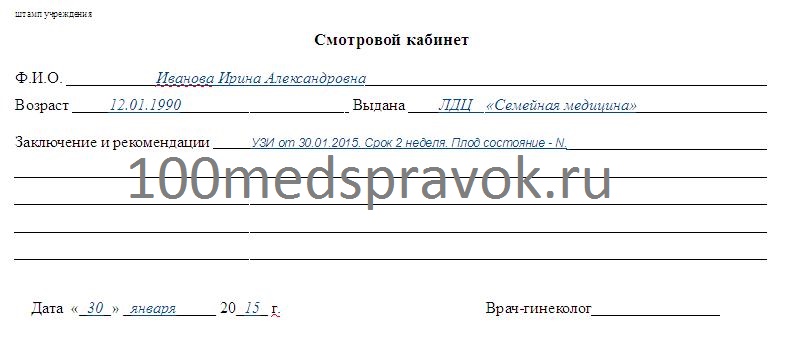 Оформить справку можно как в бесплатной женской консультации по месту своего жительства, так и в частной клинике. Практика показывает, что именно последний вариант является самым удобным, поскольку в бесплатной поликлинике очередь на ультразвуковое исследование нередко занимает несколько недель.