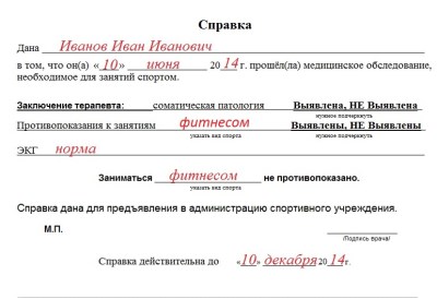 Справка для посещения спортзала: где, как и кому можно оформить?